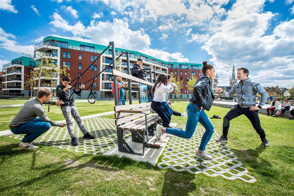 Interaktīva aktivitāšu stacija ar solu apvieno kustību un atpūtas iespējas, trenējot līdzsvaru un koordināciju.