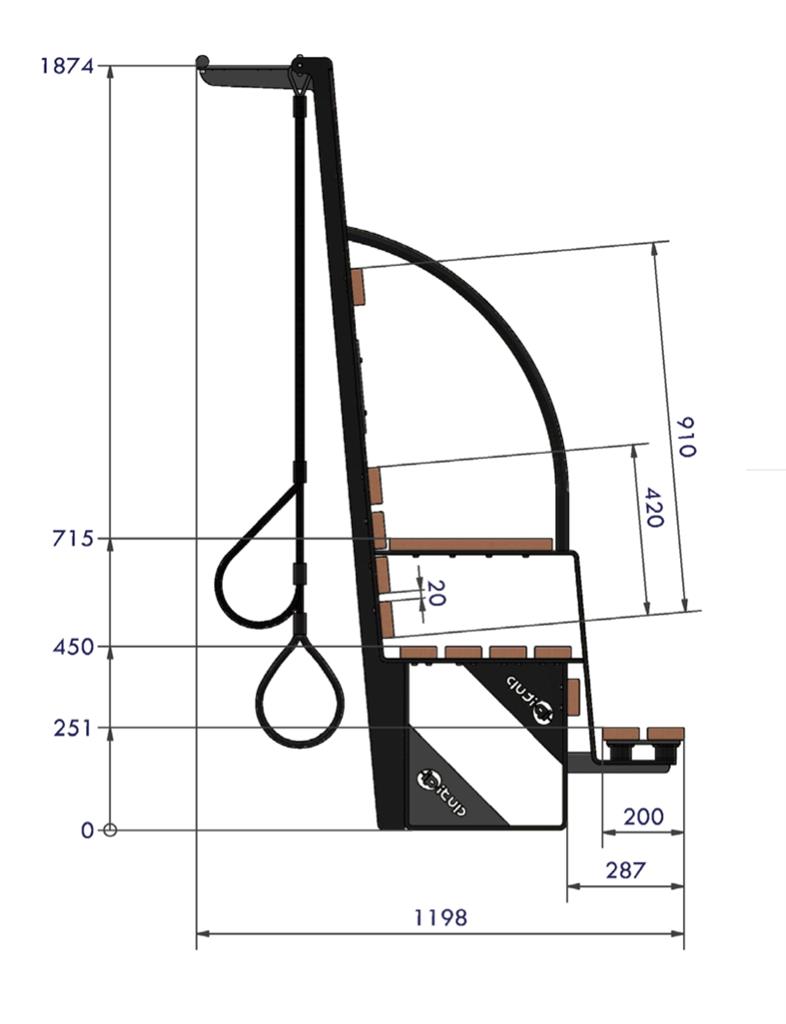 Interaktīvā aktivitāšu stacija ar solu, kas nodrošina kustību un atpūtas iespējas vairākiem lietotājiem. Piemērota rotaļu laukumiem, skolām un publiskām ārtelpām, veicinot drošu un aizraujošu aktivitāti.