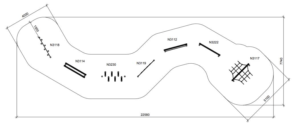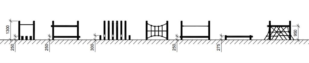 Kliūčių ruožas sudarytas iš 7 elementų: N3118, N3114, N3230, N3119, N3112, N3222, N3117.