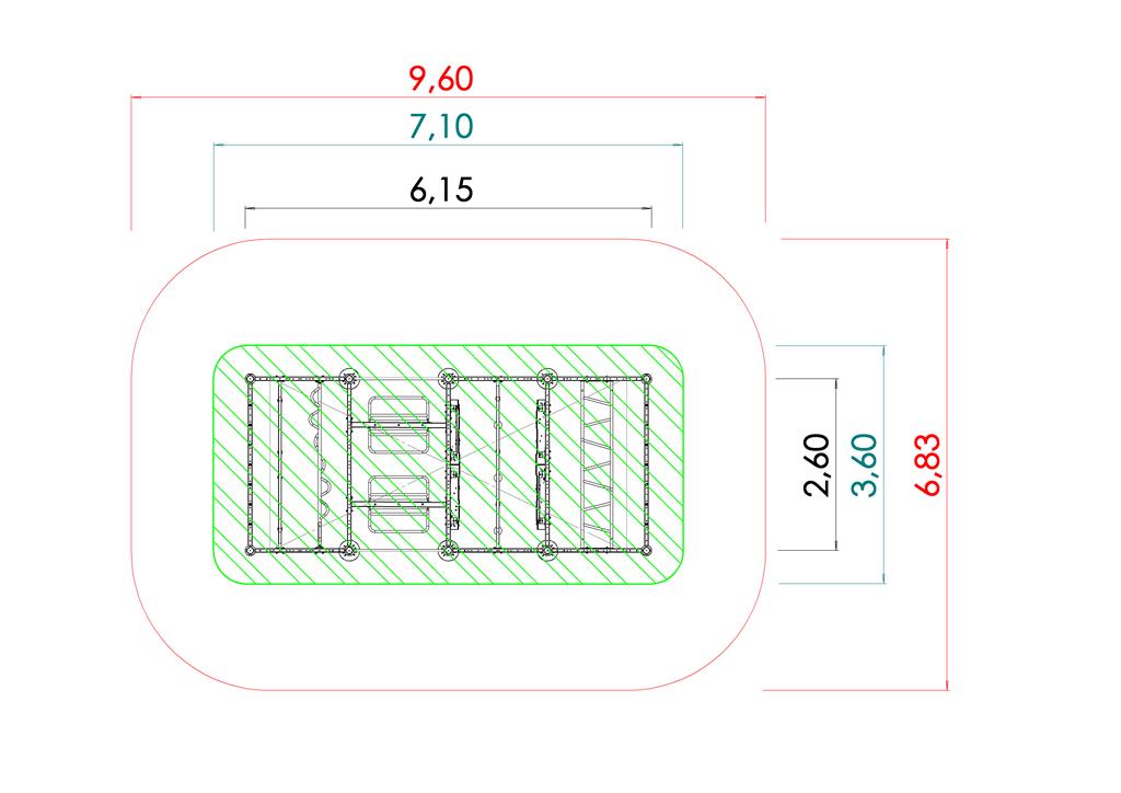 Pusiau heksagoninė lauko funkcinio treniravimo stotis
