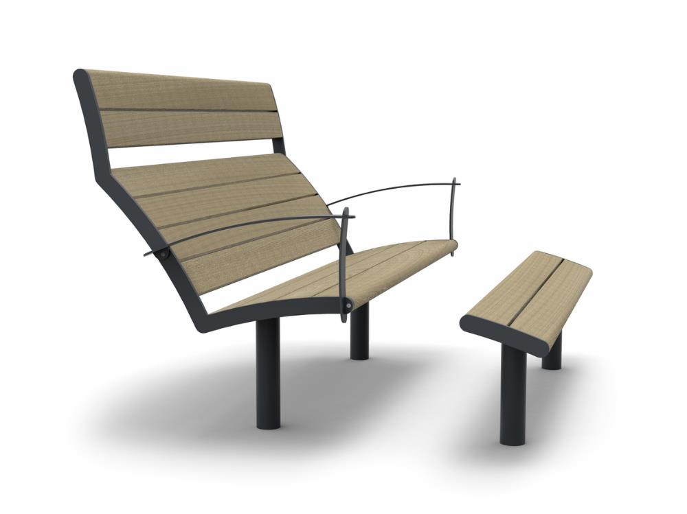 Besisukantis vienvietis suolas su atlošu, su porankiais, betonuojamas į žemę (sėdynė 460mm)