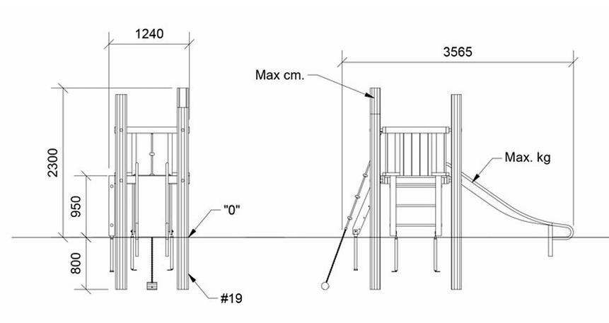 Šis kvadratinis žaidimų bokštas skirtas vyresnio amžiaus ikimokyklinio amžiaus vaikams. Bokštas sujungia žaidimą su motorikos ir jėgos lavinimu. Dvi laipiojimo galimybės – vertikalios kopėčios ir įstrižas tinklinis kopėčių segmentas – suteikia tinkamų iššūkių šio amžiaus vaikams. Pakeltas nuo žemės bokštas leidžia vaikams pasimėgauti vaizdu prieš leidžiantis čiuožykla.